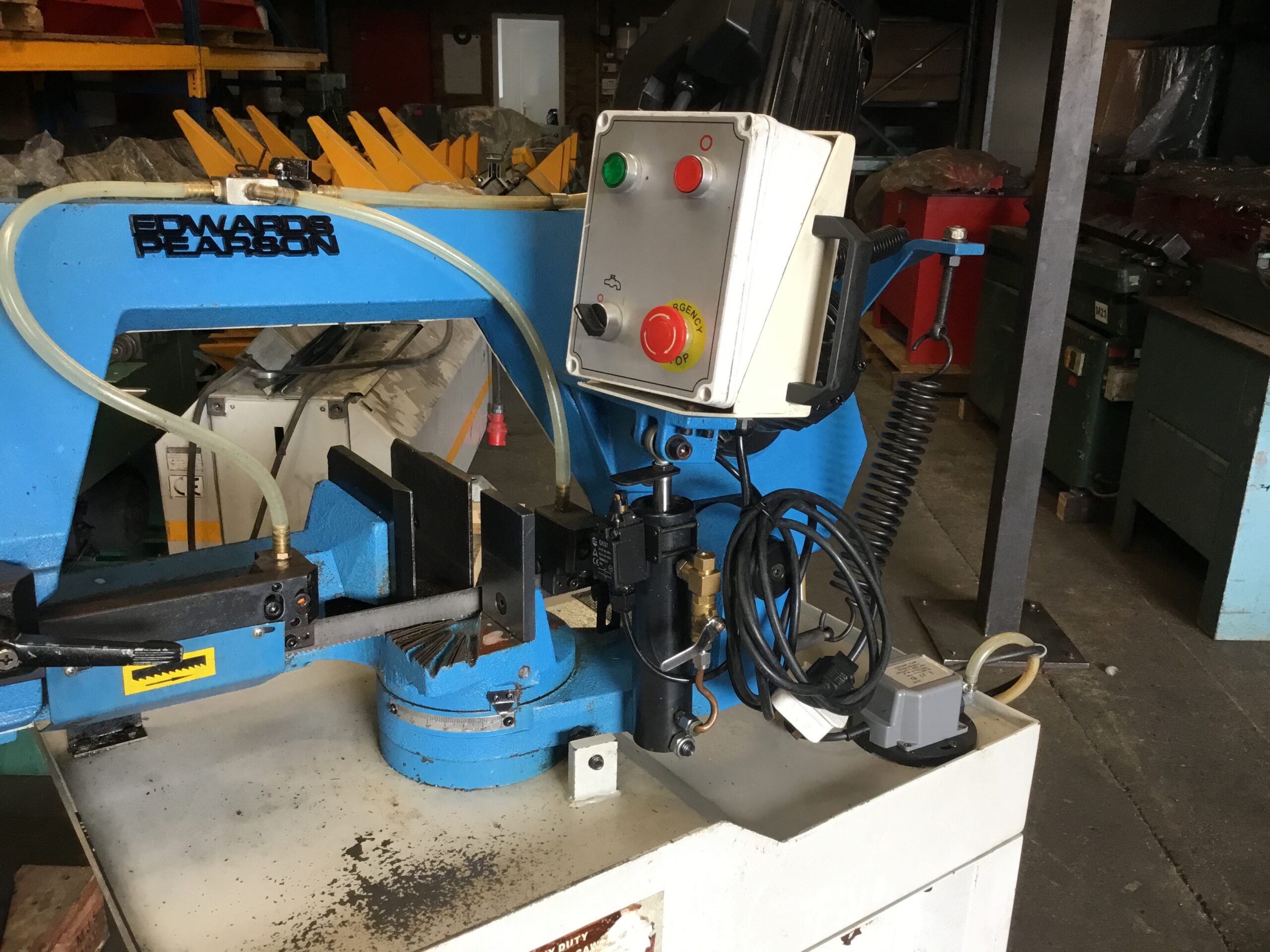 EDWARDS PEARSON MBS270 HEAVY DUTY METAL HORIZONTAL BAND SAWS (EBS01) are principally used are used in the fabrication industry for cutting circular and rectangular metal.