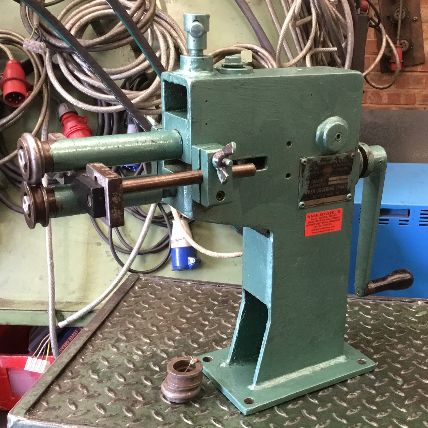 EDWARDS UR2 HAND SWAGERS (EHS15) are principally used for swaging, beading, wiring, crimping and forming sheet metal. This hand swager has a 10 ½“ (270mm) throat and can accommodate mild steel sheet up to 1.5mm thick. This machine comes complete with 2 x sets of rolls.