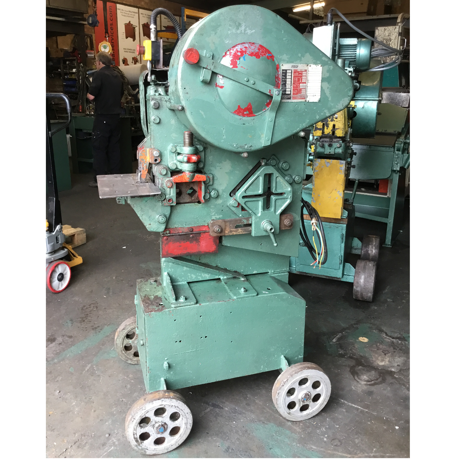 FICEP JOLLY STEELWORKERS (FSW03) are designed to perform multiple functions such as punching, shearing, notching, and forming on sheet metal. This machine has 2 workstations and is complete with round punch tooling. This machine has 415v, 3 Phase Electrics.