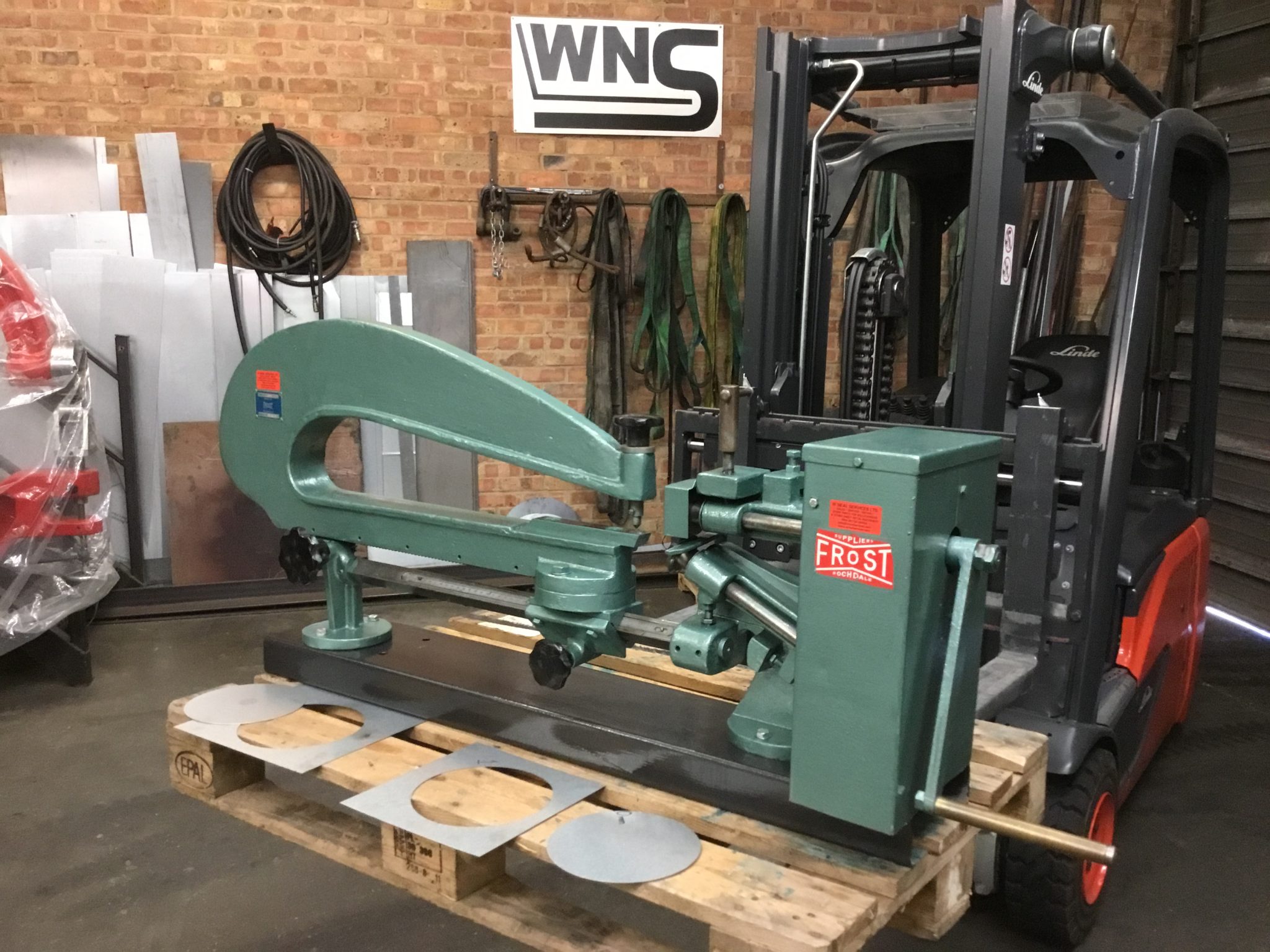 FROST MANUAL CIRCLE CUTTER MODEL TYPE 283 (FCC07) is principally used for cutting circles out of sheet metal. The FCC07 has a 200mm deep cutting throat and a 600mm deep bowed throat and can accommodate mild steel up to a maximum thickness of 1.6mm.