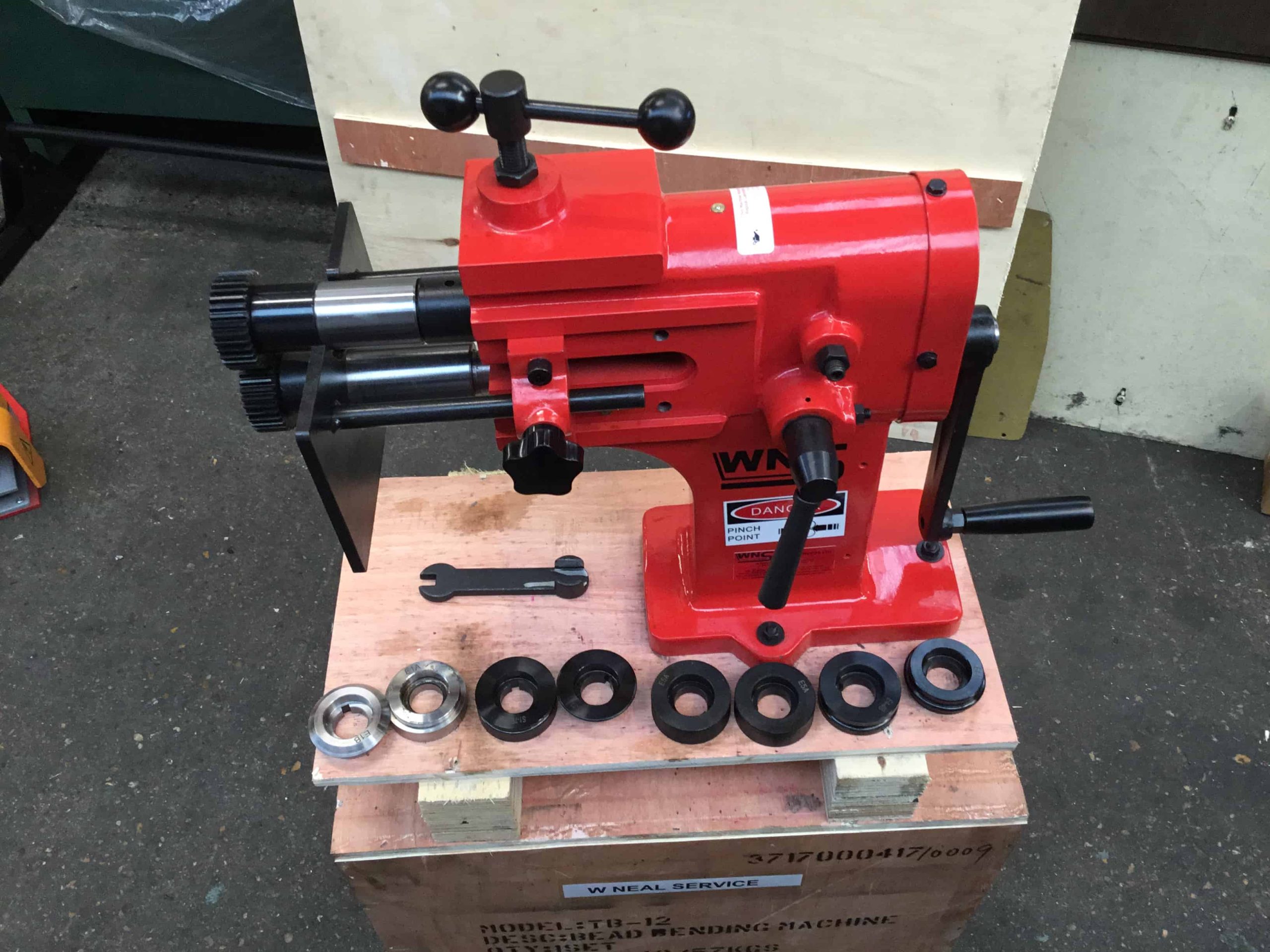 WNS HAND SWAGERS / SWAGING MACHINES (HS200) are principally used for swaging, beading, wiring, crimping, and forming of sheet metal. This hand swager has a 200mm (8”) throat and can accommodate mild steel sheet up to 1.2mm thick. This machine comes complete with 5 set of rolls.
