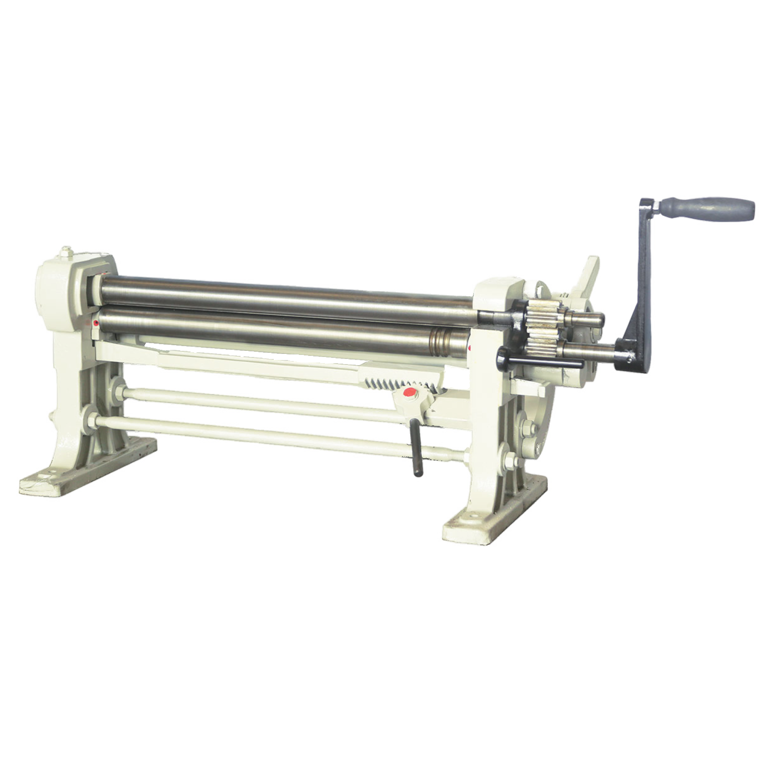 ISITAN HAND BENDING ROLLS (BR610/46I) are principally used for rolling tubes/cylinders in sheet metal. The metal is ‘pinched’ between two rolls are curves as it comes into contact with the third (back) forming roll. These rolls are equipped with 3 x wiring grooves and also have the following features: top slip with a quick release top roll, quick back roll adjustment, SAE 1050 quality certified steel rolls with high tensile strength and cast iron main frame.