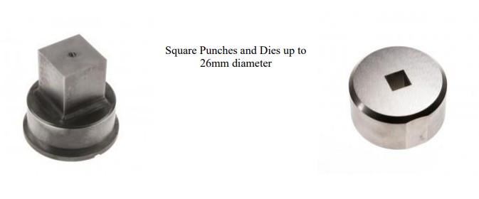• Square punch & die set (up to 26mm)