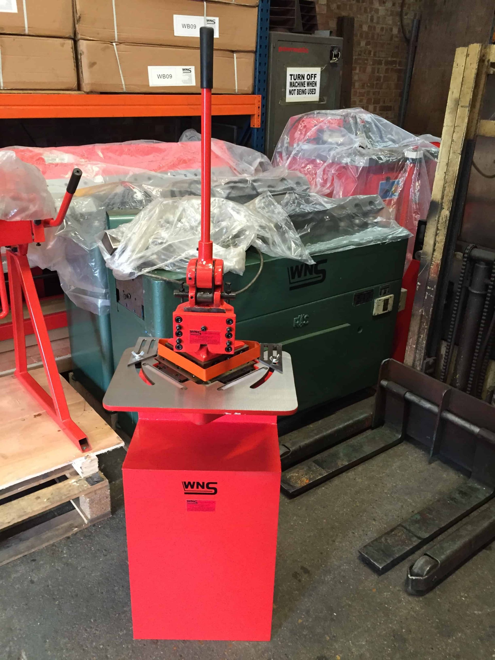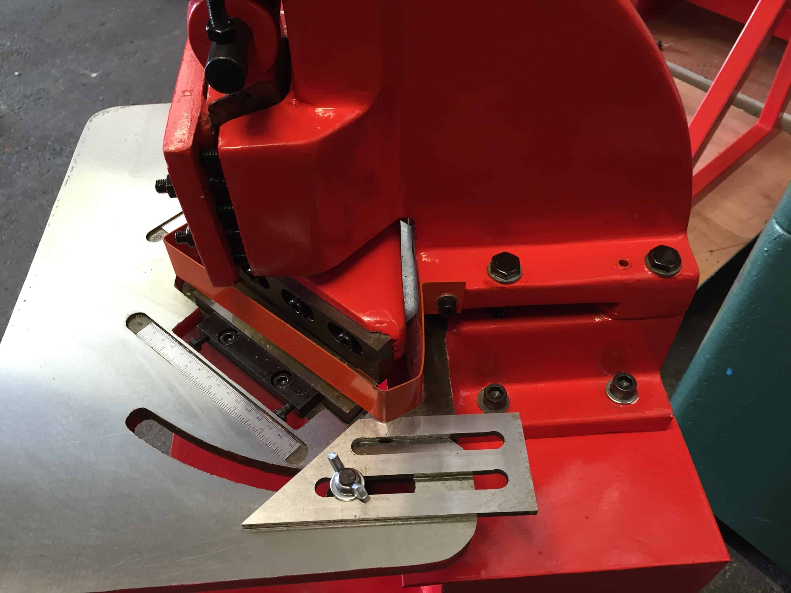 WNS CORNER NOTCHER (CN150) has a cutting angle fixed at 90° and can notch 150mm notches at a maximum capacity of 1.5mm. This machine can be bench mounted and is hand operated with a 450mm long handle. The corner notcher features fully adjustable precision ground guide plates and integrated rulers.