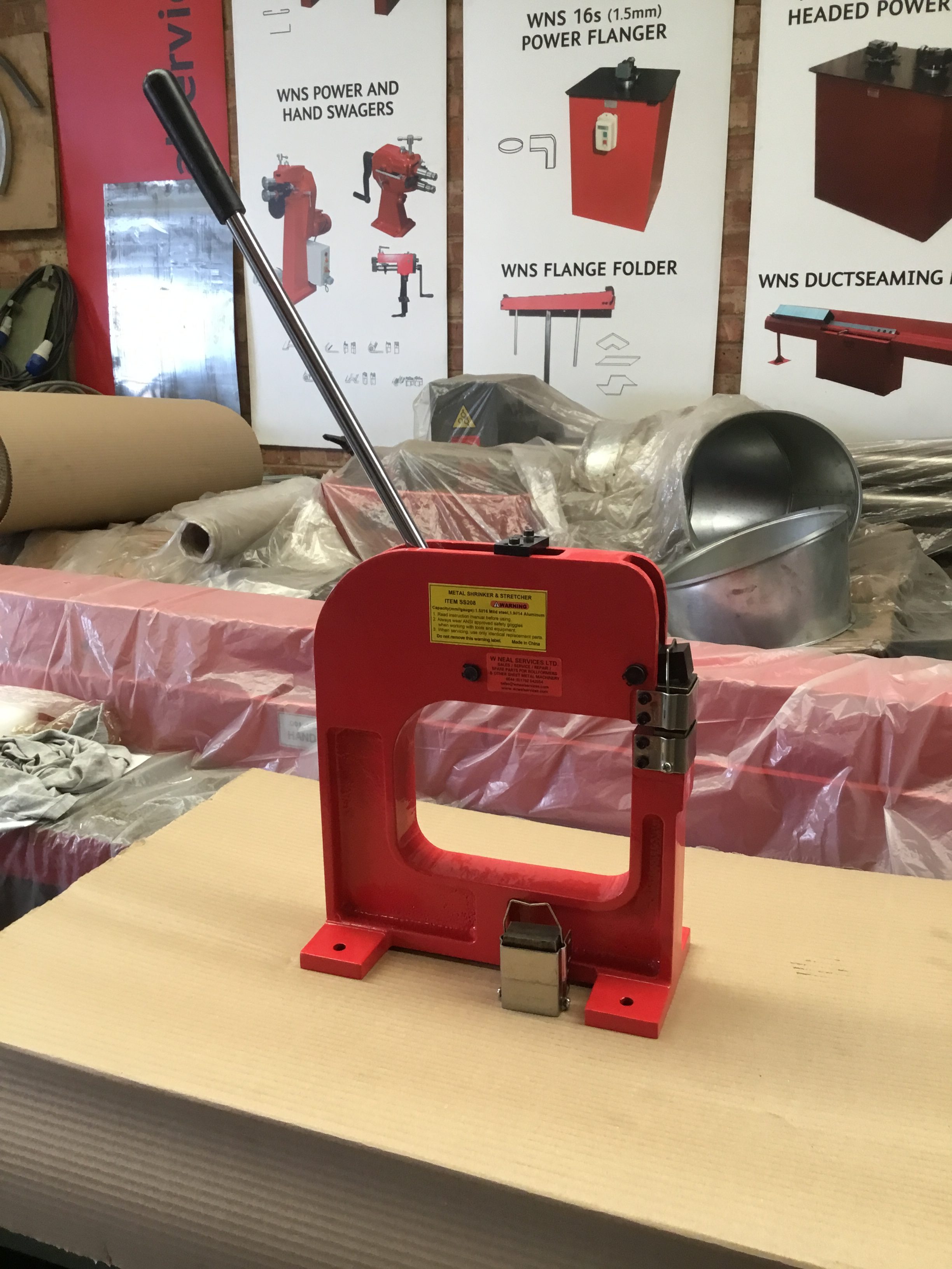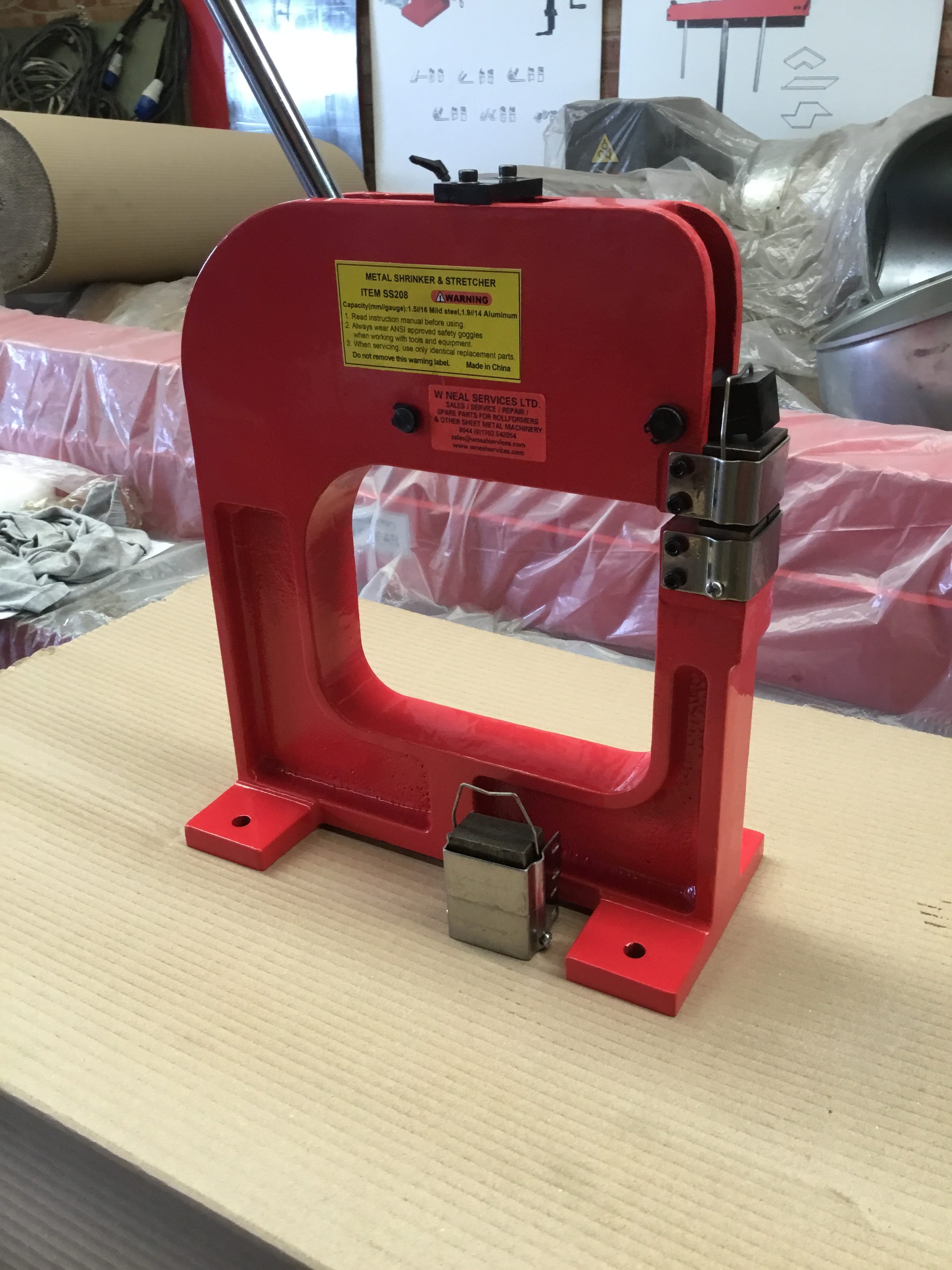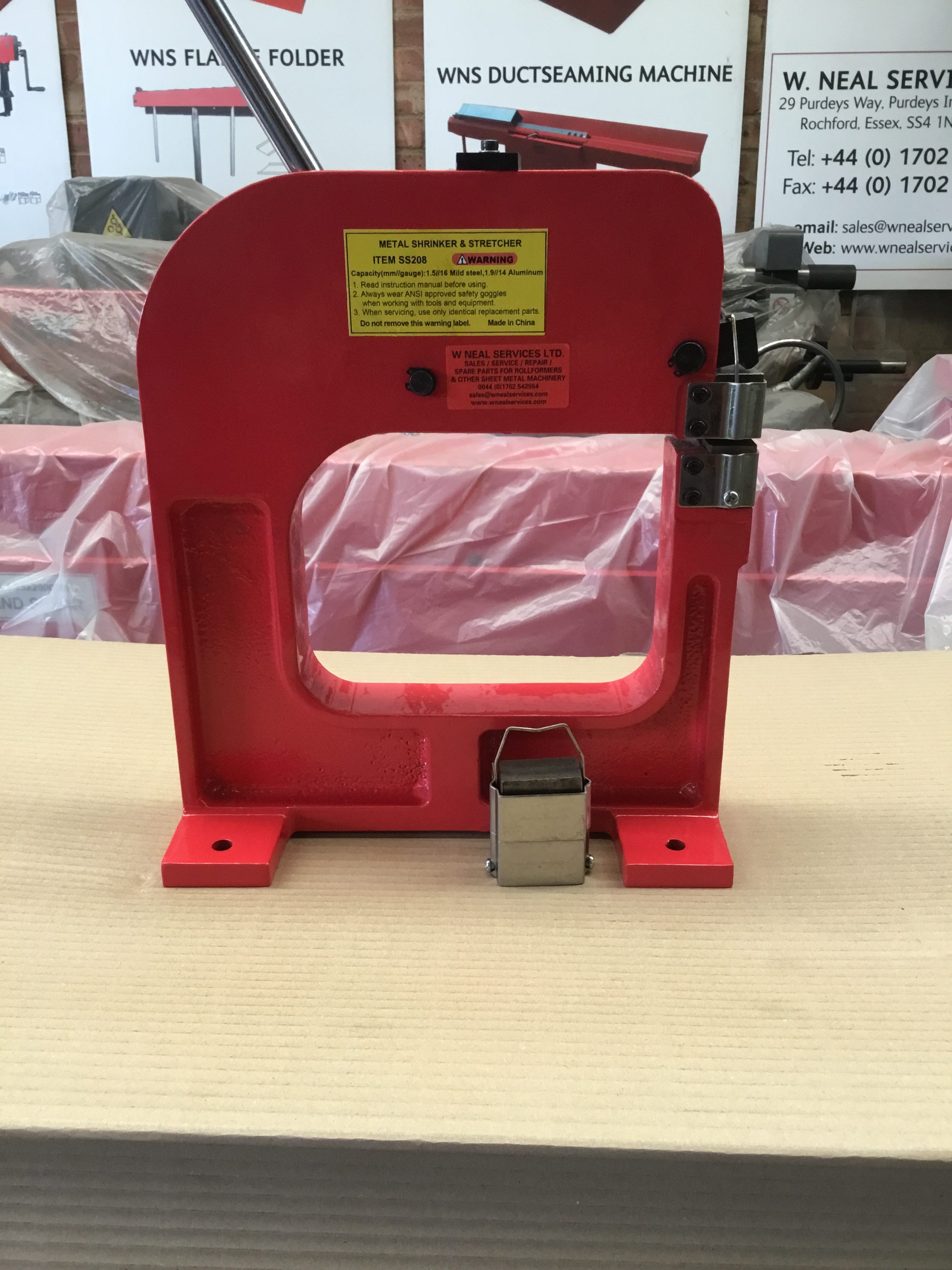 WNS SHRINKER/STRETCHER (SS208H) is a heavy duty model accommodating mild steel sheet up to 1.5mm thick. It is hand operated and is quick and easy to change jaws. Shrinker/Stretchers are used to create smooth radius curves in sheet metal, without cutting, welding, heating or hammering. The shrinker contracts the metal for inside curves and the stretcher expands the metal for outside curves. These machines are predominantly used on body panels for cars and aeroplanes, however are also utilised in many other areas to fabricate or repair metal work, where the combination of a curve and an angle is required.