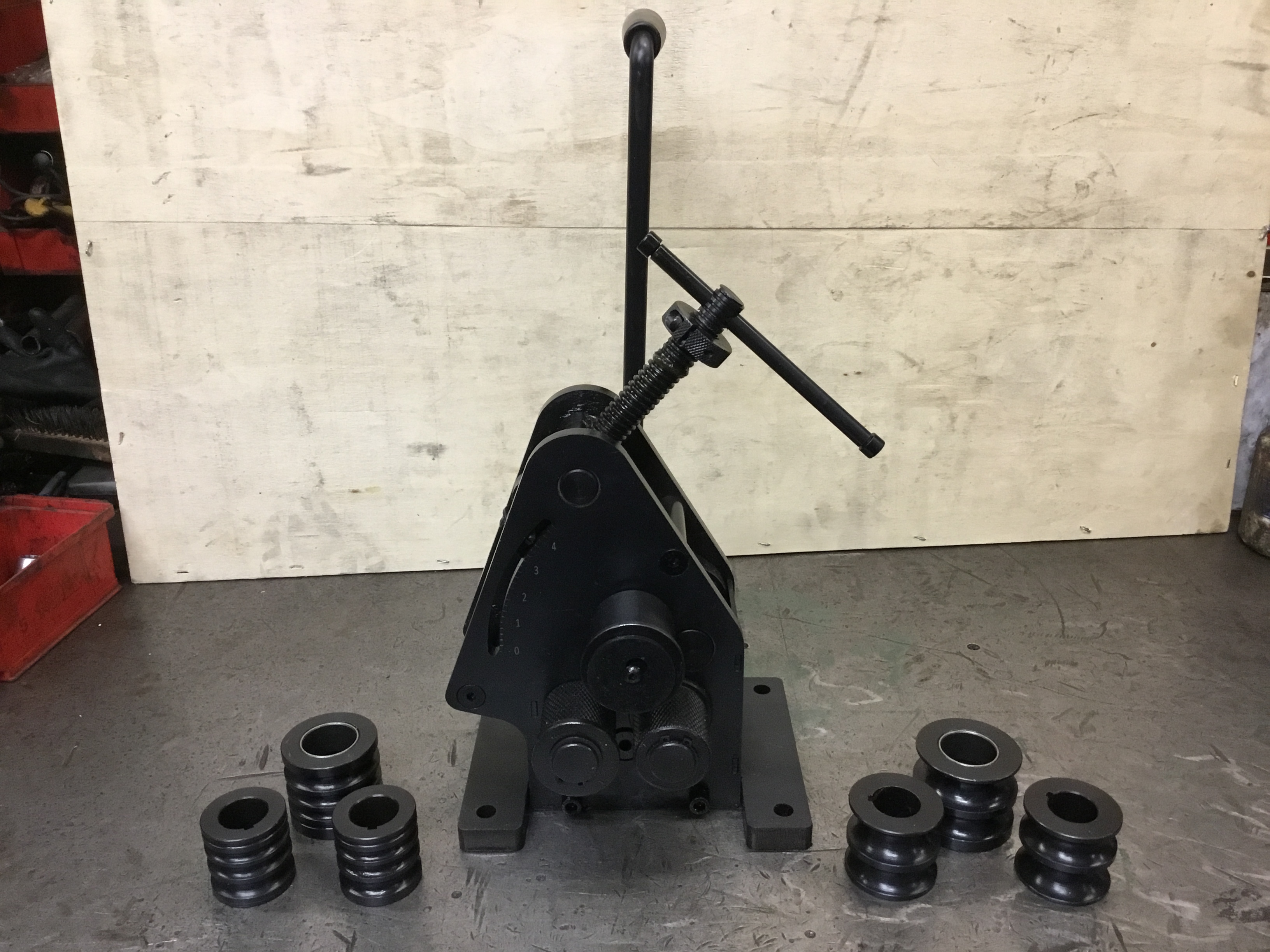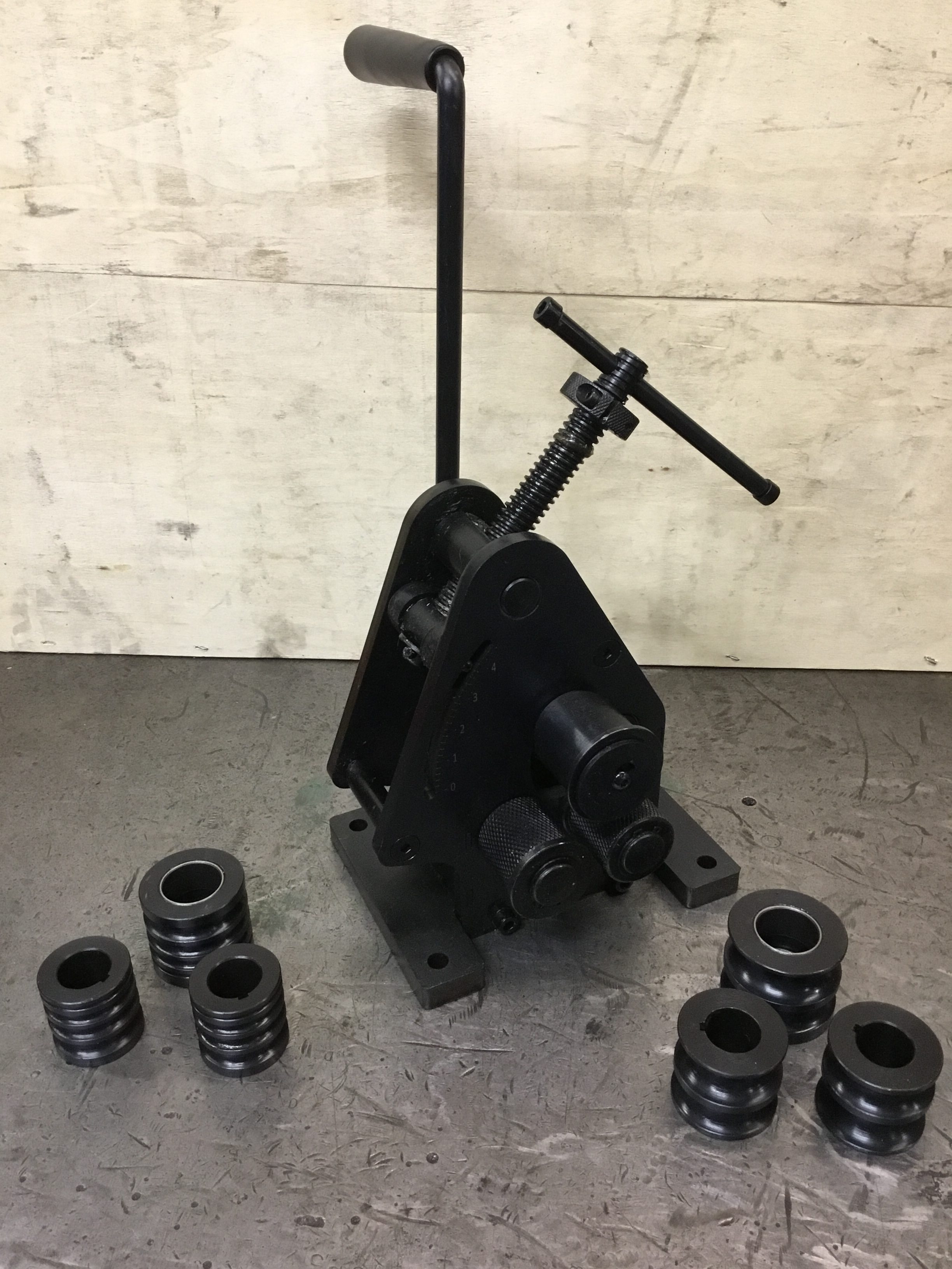 WNS HEAVY DUTY RING ROLLERS (RR40) create curves and rings in flat, round and square bar and round tube. Formed by three rolls comprising of an adjustable top roll (to give the desired bend) and two lower (to feed the material). Complete with 3 sets of dies and mounting holes to attach to a stand or bench top.